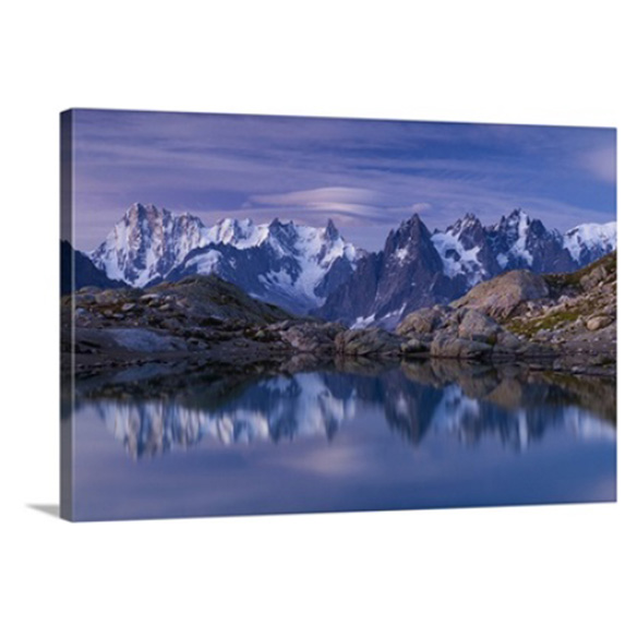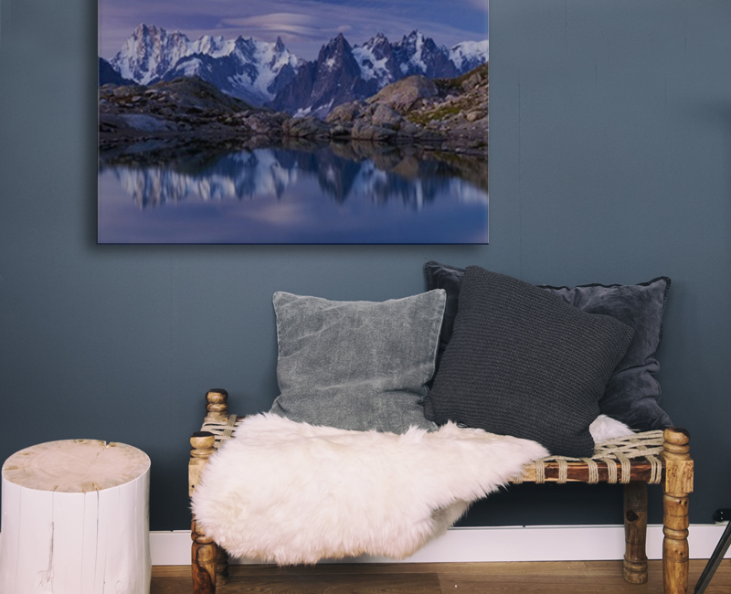 Re-fresh your walls with the cool blues and dark greys that are captured in the art print “Dreams before The Dawn”. Displaying a beautiful, high resolution landscape of a snow covered mountain top, this canvas will add a clean, airy feel to any themed room.
